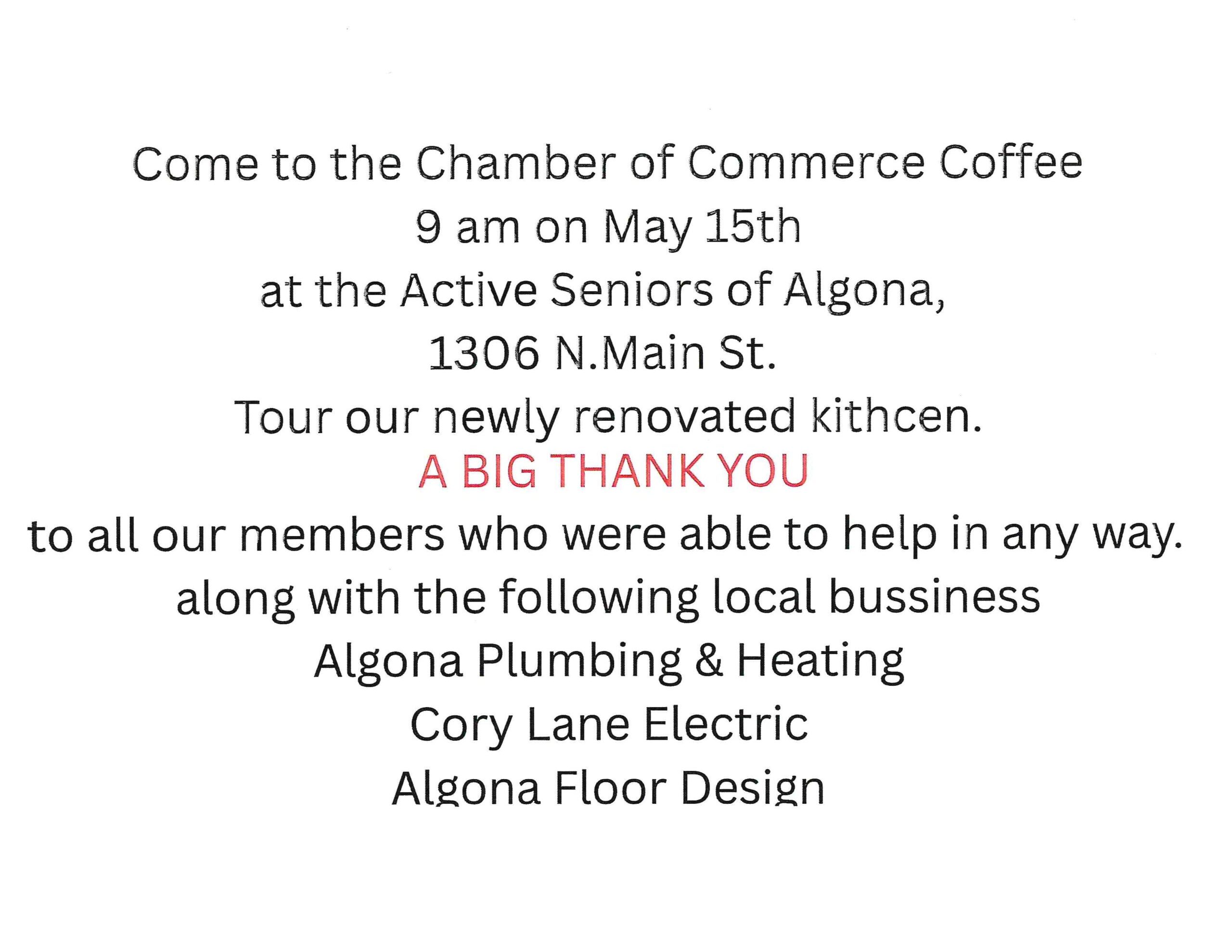 The first Thursday of the Month Coffee will be held on the first Thursday… |